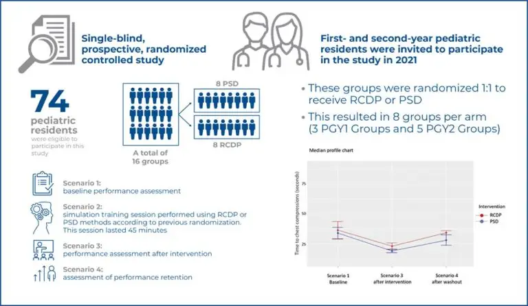 Highlights Improvement in the performance of simulated pediatric cardiopulmonary resuscitation was observed after postsimulation debriefing and rapid cycle deliberate practice sessions. Postsimulation debriefing and rapid cycle deliberate practice are suitable for cardiopulmonary resuscitation training among pediatric residents. Retention of knowledge and skills deteriorated 5 weeks after training. ABSTRACT Objective: Simulation plays an important role in cardiopulmonary resuscitation training. Comparing postsimulation debriefing with rapid cycle deliberate practice could help determine the best simulation strategy for pediatric cardiopulmonary resuscitation training among pediatric […]