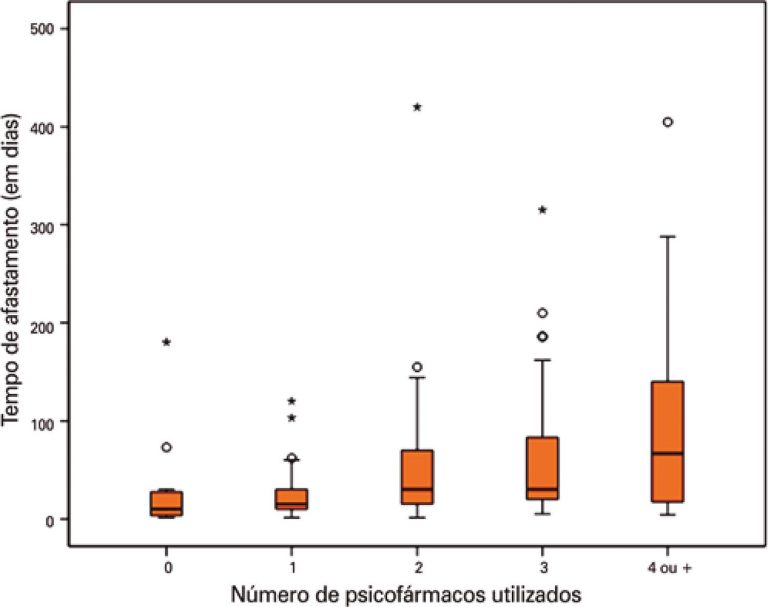 RESUMO Objetivo Descrever a utilização de psicofármacos por servidores públicos com registro de absenteísmo por transtornos mentais, e analisar sua associação com a duração do afastamento do trabalho. Métodos Estudo transversal com servidores públicos em afastamento laboral por transtornos mentais, entre janeiro a dezembro de 2017. Variáveis demográficas, ocupacionais e clínicas foram obtidas a partir de dados secundários. Foram empregados testes não paramétricos para avaliar a correlação entre o uso de psicofármacos e o tempo de afastamento. A análise de […]