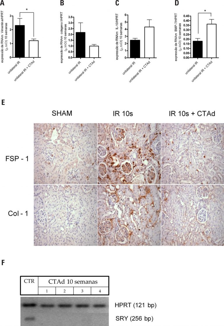 RESUMO Objetivo: Analisar o papel das células-tronco derivadas do tecido adiposo na redução da progressão da fibrose renal. Métodos: células-tronco derivadas do tecido adiposo foram isoladas de camundongos C57Bl/6 e caracterizadas por citometria e diferenciação. Fibrose renal foi instaurada após clampeamento unilateral do pedículo renal por 1 hora. Após 4 horas de reperfusão, 2.105 células-tronco derivadas do tecido adiposo foram administradas por via intraperitoneal, e os animais foram acompanhados por 24 horas e 6 semanas. Em outro grupo de experimentos, […]