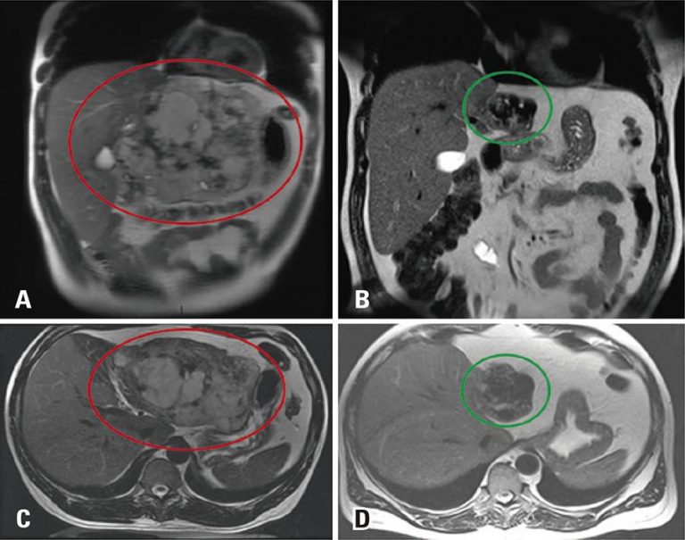 Homem de 46 anos realizou ressonância magnética por dor abdominal, tendo achado incidental de hemangioma hepático gigante (). No seguimento, após 6 anos, foram observadas redução volumétrica, retração dos contornos e redução do sinal da lesão na sequência ponderada em T2 (). A evolução temporal, associada às características de imagem, indicou esclerose/hialinização do hemangioma (). […]