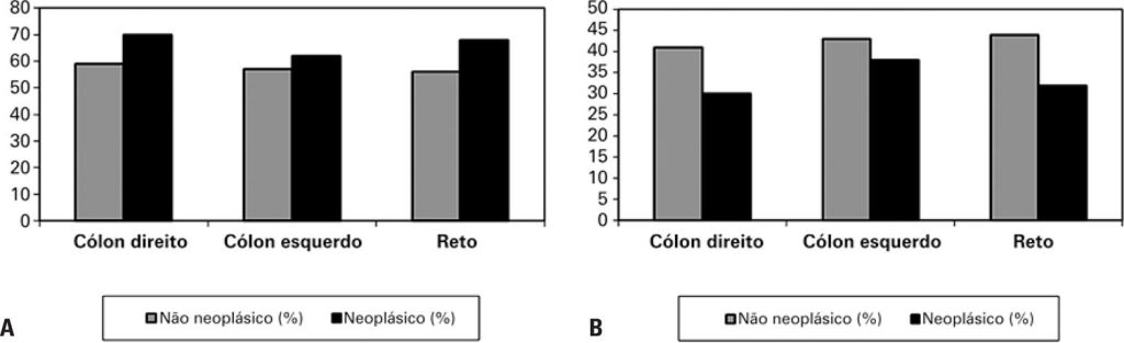Amostras de tecidos colorretais neoplásicos e não neoplásicos foram obtidas de 64 pacientes operados com carcinoma colorretal sem metástases a distância. As expressões de heparan sulfato, sulfato de condroitina e sulfato de dermatan e seus fragmentos foram analisadas por espectrometria de massa por ionização por electrospray, com técnica de extração e quantificação de glicosaminoglicanos após proteólise e eletroforese. Para análise estatística, utilizaram-se média, desvio padrão e teste t de Student.