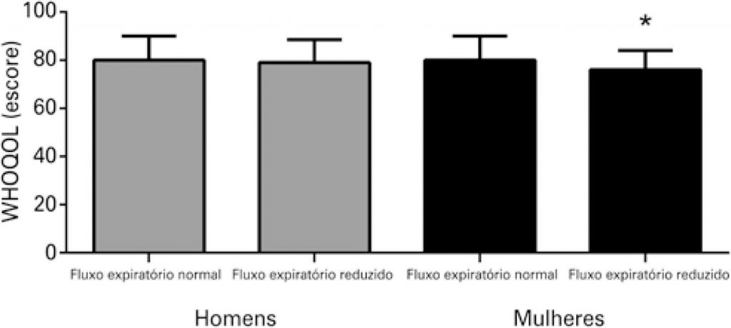 Em comparação com mulheres idosas com capacidade respiratória normal, as pessoas com capacidade respiratória reduzida apresentaram escores mais baixos para o Miniexame do Estado Mental (p=0,048) e qualidade de vida (p=0,040). Nos homens, não foram observadas diferenças (p>0,05).