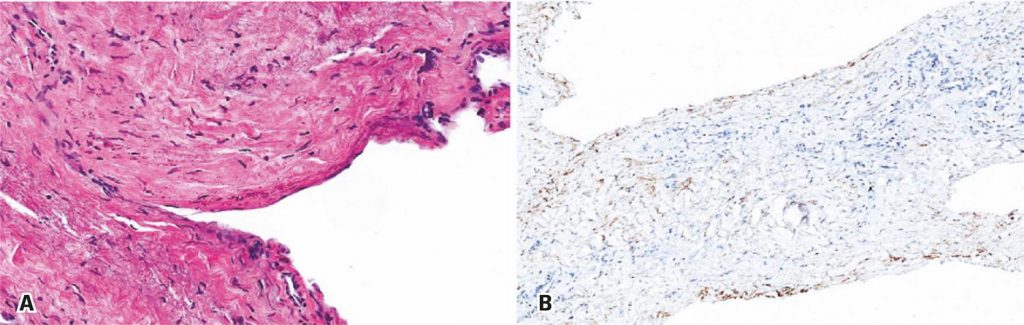 A imagem por ressonância magnética identificou lesão cística selar com extensão suprasselar bem delineada e homogênea, com paredes finas. A glândula pituitária e a haste hipofisária pareceram estar alargadas ao longo das margens do cisto e pressionadas contra o dorso selar. Não foram identificadas calcificações e nem áreas sólidas ( e ).