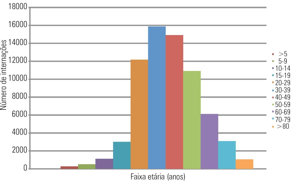 Durante 2010, houve 69.039 admissões hospitalares devido à litíase urinária, totalizando 0,61% das internações hospitalares do Sistema Único de Saúde. O custo médio destas internações foi R$ 423,42, culminando no gasto de R$ 29.232.682,56. Houve aumento de 69% no volume de internações por litíase no Sistema Único de Saúde entre 1996 e 2010 (43.176 versus 69.309; p < 0,001; OR = 1,69). O número de internações hospitalares foi 5% maior entre dezembro a março comparado ao período entre junho e setembro (35.290 versus 33.749; p < 0,001; OR = 1,10). O percentual de internação por litíase urinária em indivíduos brancos foi 75% maior do que entre os negros (63,2 versus 35,8%; p = 0,02; OR = 1,75).