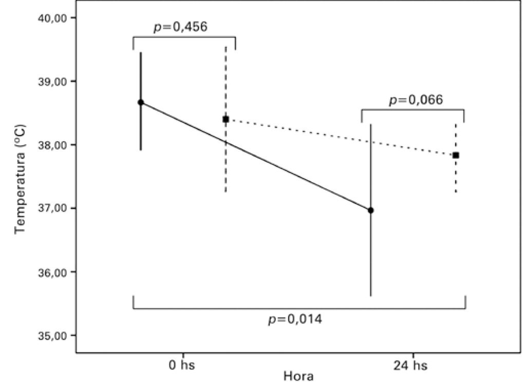 A febre é uma resposta não específica a vários tipos de insultos, de origem infecciosa ou não, e sua importância em doenças continua a ser um enigma. Nosso objetivo foi resumir a evidência atual para o uso de antipiréticos em pacientes graves. Foram realizadas revisão sistemática e meta-análise de publicações entre 1966 e 2013. As bases de dados MEDLINE e CENTRAL foram pesquisadas para estudos sobre antipirese em pacientes graves. A meta-análise restringiu-se a ensaios clínicos randomizados em humanos adultos; pacientes graves; tratamento com antipiréticos em um braço contra placebo ou não tratamento no outro; e dados sobre mortalidade. Os desfechos avaliados foram: mortalidade geral na unidade de terapia intensiva, mudança de temperatura e tempo de internação na unidade de terapia intensiva e no hospital. Três ensaios clínicos randomizados com 320 participantes foram incluídos. Os pacientes tratados com antipiréticos tiveram mortalidade na unidade de terapia intensiva semelhante aos controles (razão de risco de 0,91, com intervalo de confiança de 95% de 0,65-1,28). A única diferença observada foi uma diminuição na temperatura após 24 horas em pacientes tratados com antipiréticos (-1,70±0,40 x – 0,56±0,25ºC; p=0,014). Não houve diferença entre tratar ou não a febre em pacientes graves.