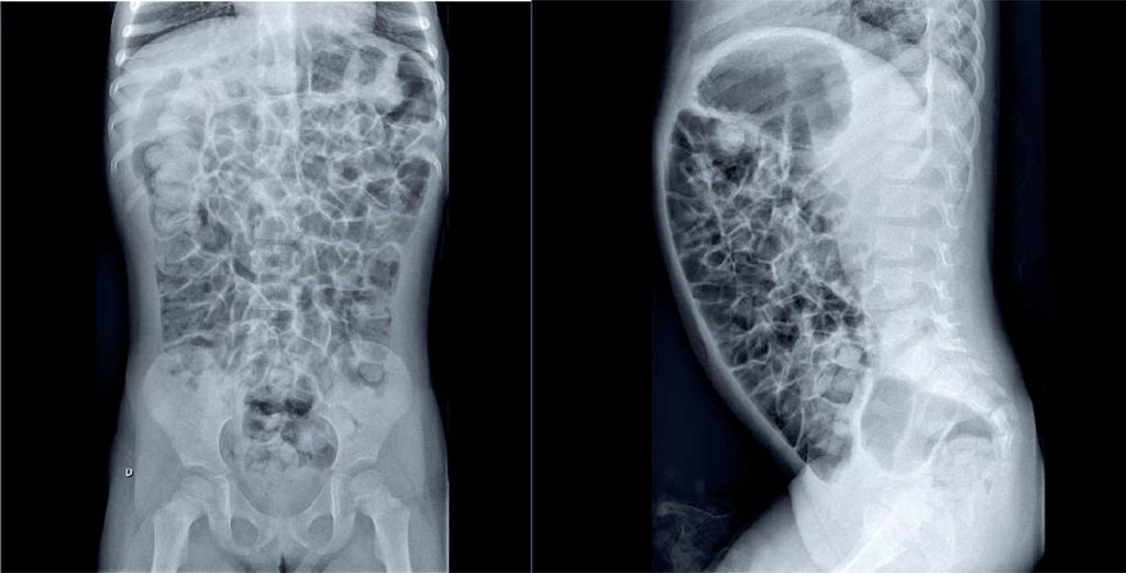 A 3.5-year-old female presented with a 10-month history of abdominal pain and distension, accompanied by frequent belching and flatulence. No nausea, vomiting, or nighttime awakening due to pain was reported, and the patient’s appetite remained intact. Growth and development were age-appropriate (weight: 16.2kg, height: 106cm). She was born at term without complications and had a normal neonatal screening. No comorbidities typically associated with small intestinal bacterial overgrowth (SIBO)—such as prior intensive care unit admission, immunodeficiency, food intolerance, Helicobacter pylori infection, anatomical abnormalities, prior abdominal surgeries, motility disorders, autoimmune conditions, or hepatic condition—were identified. Initial diagnostic hypotheses included more prevalent gastrointestinal disorders such as lactose intolerance, celiac disease, intestinal parasitosis, chronic constipation, and intestinal malformations (e.g., intestinal malrotation). SIBO was suspected following a thorough reassessment of the clinical history. The diagnosis was confirmed via a hydrogen breath test with lactulose, supported by radiological findings. Following treatment with metronidazole (30 mg/kg/day for 10 days), the patient demonstrated significant clinical resolution of the previously reported symptoms. A follow-up hydrogen breath test revealed no further evidence of bacterial overgrowth in the small intestine.