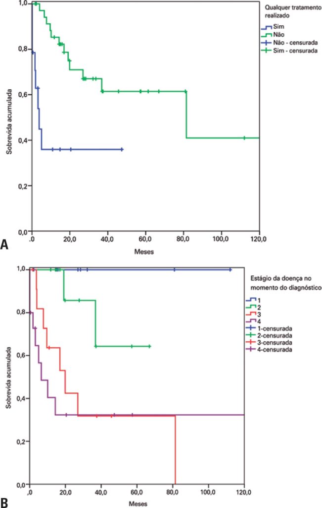 Os locais mais frequentes de neoplasia foram colo de útero e próstata. O estágio da doença e o sítio primário foram fatores prognósticos.