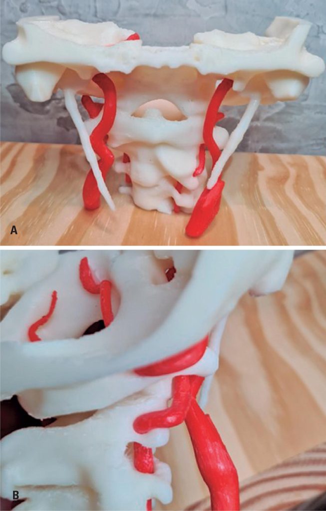 The focus of this case report is to technically describe a noninvasive diagnostic evaluation of bow Hunter’s syndrome using a dynamic computed tomography angiography protocol and discuss its advantages. In addition, we aimed to exemplify the quality of the study by presenting images of a 3D-printed model generated to help plan the surgical treatment for the patient. The dynamic computed tomography angiography protocol consisted of a first image acquisition with the patient in the anatomic position of the head and neck. This was followed by a second acquisition with the head and neck rotated to the side that triggered the symptoms, with technical parameters similar to the first acquisition. The acquired images were used to print a 3D model to better depict the findings for the surgical team. The dynamic computed tomography angiography protocol developed in this study helped visualize the vertebrobasilar arterial anatomy, detect vertebral artery stenosis produced by head and neck rotation, depict the structure responsible for artery stenosis (e.g., bony structure or membranes), and study possible complications of the disease (e.g., posterior cerebral circulation infarction). Additionally, the 3D-printed model better illustrated the findings of stenosis, aiding in surgical planning. In conclusion, dynamic computed tomography angiography for the evaluation of bow Hunter’s syndrome is a feasible noninvasive technique that can be used as an alternative to traditional diagnostic methods.