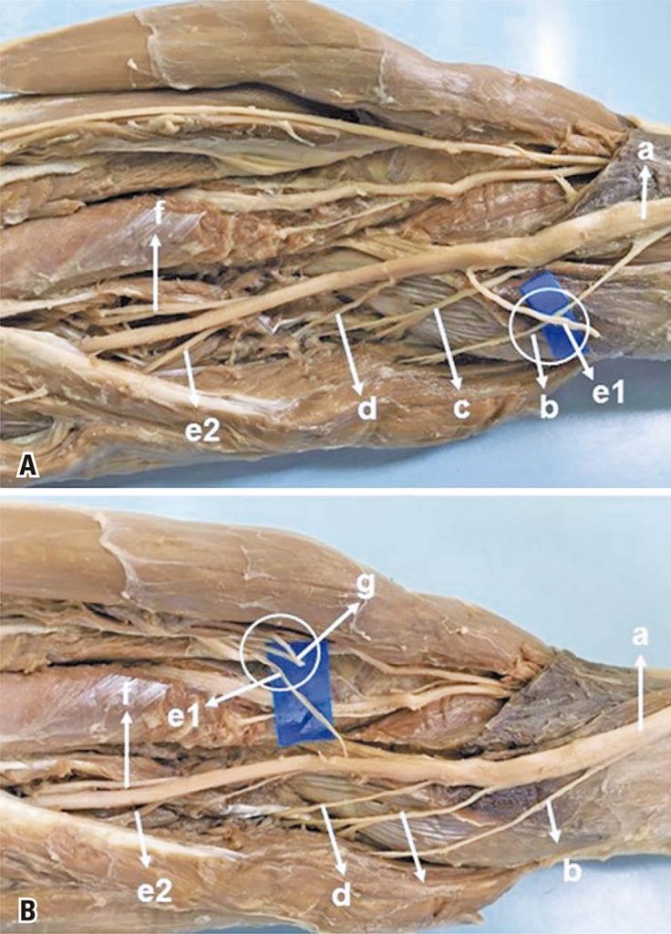 Nos 28 membros em que existam 2 ou mais ramos, 1 desses poderia ser conectado aos ramos para o músculo extensor radial curto do carpo e pronador redondo sem tensão, mesmo durante os movimentos de pronossupinação do antebraço e flexão-extensão do cotovelo.
