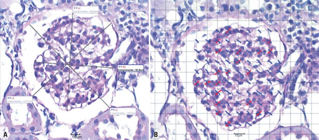 Ratos Wistar, com oito semanas de idade, pesando, em média, 260g, foram divididos em Grupo Controle e Grupo Tabagista. Cada grupo foi subdividido em quatro grupos de dez animais para análise morfofuncional, em um período de sete e 28 dias. O Grupo Tabagista foi exposto à fumaça de 40 cigarros por dia, em horários determinados e equipamento automatizado de queima de cigarros, denominado smoking machine (SM-MC-01). Após o período de exposição, foram coletadas amostras de urina e sangue para as análises funcionais, e os rins foram dissecados e submetidos a procedimentos histológicos para análises morfoquantitativas.