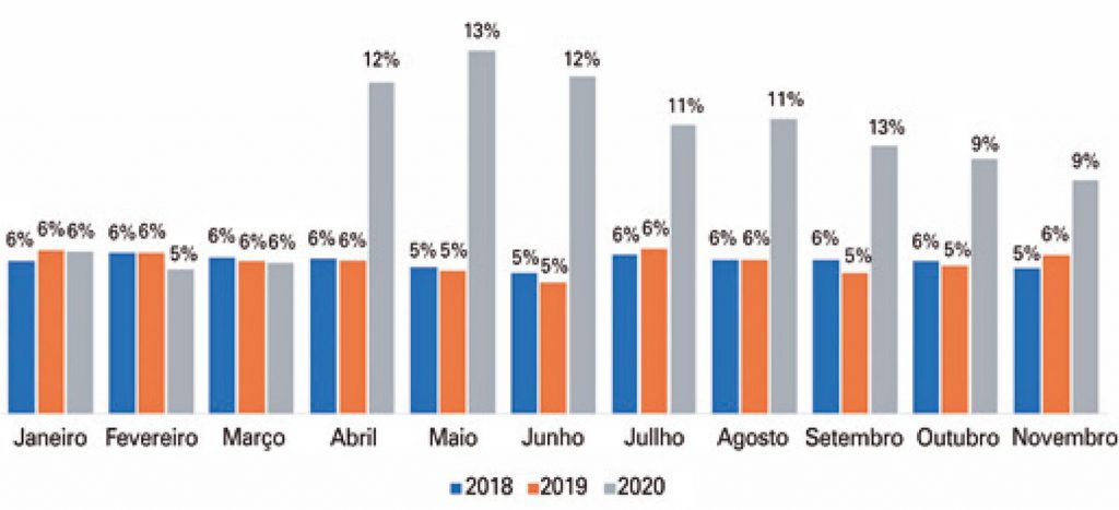 Uma análise retrospectiva das visitas consecutivas ao pronto atendimento, de 1 de janeiro de 2020 a 21 de novembro de 2020, foi realizada e comparada ao mesmo intervalo nos anos de 2018 e 2019. O volume de atendimentos e as características clínicas e demográficas dos pacientes foram comparados. Todos os diagnósticos foram incluídos, exceto os casos confirmados de COVID-19.