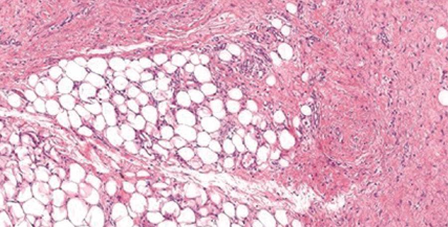 Tecido adiposo e septo fibroso espesso (hematoxilina e eosina)
