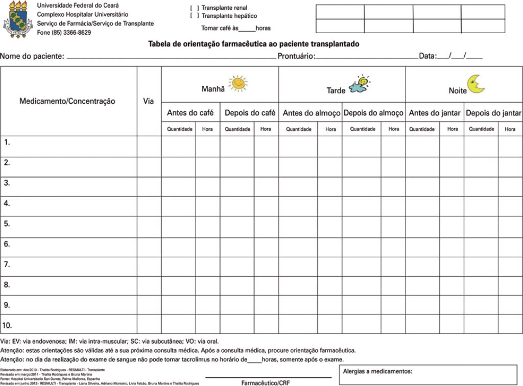 Descrever e analisar a orientação farmacêutica oferecida na alta de pacientes transplantados.