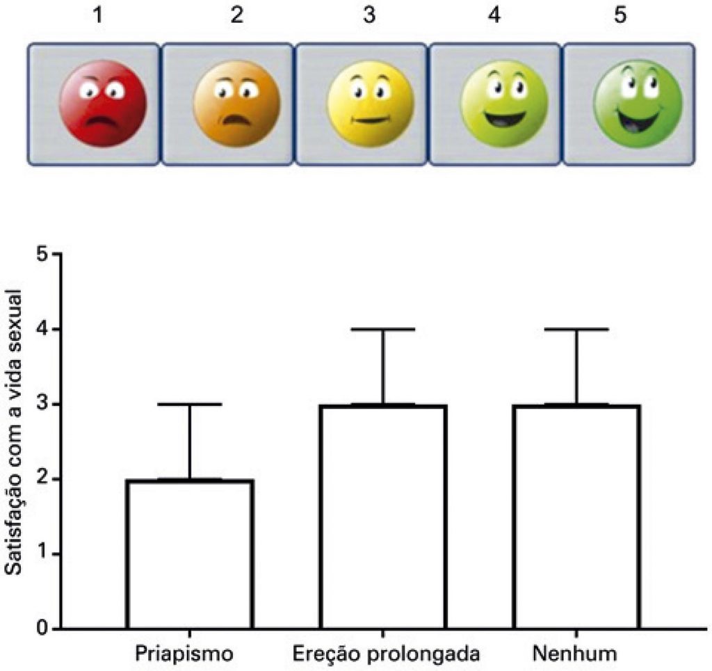 Foram entrevistados 64 indivíduos com média de idade de 12 (7-28) anos. A prevalência de priapismo foi de 35,9% (23/64). O episódio mais precoce ocorreu aos 2 anos de idade e o mais tardio, aos 42 anos. A projeção estatística foi de que 71,1% desses sujeitos teriam pelo menos um episódio de priapismo ao longo da vida. Pacientes adultos com episódios de priapismo (10/23) apresentaram função erétil significativamente pior Escala de Rigidez de Ereção de 2 [1-3]; p=0,01 e estavam menos satisfeitos com a vida sexual 3 [3-5]; p=0,02.