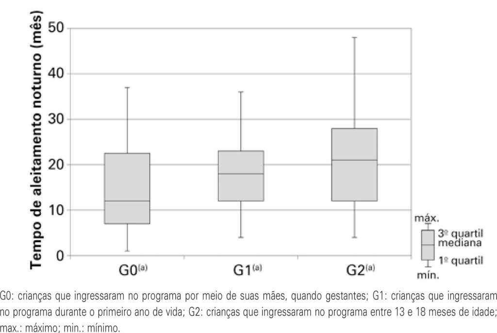 : Estudo transversal com 465 crianças divididas em 3 grupos: crianças cujas mães ingressaram no programa quando gestantes (n=50); crianças que ingressaram no programa durante o primeiro ano de vida (n=230); e crianças que ingressaram no programa entre 13 e 18 meses de idade (n=185). Os testes χ2 e Kruskal-Walis (intervalo de confiança de 95%) foram utilizados para avaliar a relação das variáveis.